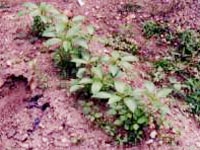 〈今年度の概況〉 レッドファイヤーは2001年5月12日に畝に種をばら撒きにしましたが、無事育ったのは3株だけでした。種蒔き後の水不足が原因かと思われます。7月には大きく成長したが食べてみると苦かったです。ただつくるだけでなく、美味しくつくることがいかに難しいかを実感しました。 〈来年度に向けて〉 種蒔き後、発芽までの間水遣りが不足したのが原因と思われるので工夫が必要です。 |