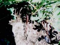 〈今年度の概況〉 ラッカセイは2001年5月12日に種を撒きました。最近ではほとんど輸入ものになっており、作っているところを見たことが無い人がほとんどだったので、その成育は興味深かったです。9月になると、雌しべを地下に伸ばし地中にさやを作り始めました。一畝分蒔きましたが結局発芽したのは3株だけでした。 〈来年度に向けて〉 発芽率が悪かったので、水遣りなどで工夫をする必要があります。 |