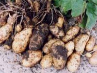 〈今年度の概況〉 広野グランド管理人の藤原さんが2001年の3月に種芋を植えてくださいました。4月に初芽した芽を虫に食べられるなどの被害もありましたが、5月にはナスに似た紫色の花を咲かせ、ナス科であることを体験的に知りました。 |