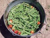〈今年度の概況〉 スナックエンドウは2000年の12月に種を蒔きました。冬の間はゆるやかな成長でしたが、春になると急に大きくなり始め、支柱をしました。5月には白い花をたくさん咲かせた後鈴なりに実をつけました。6月に病気のため引き上げるまでずいぶんと楽しむことができました。生のまま口に入れると有機ならではの甘味が口に広がりました。 〈来年度に向けて〉 終盤は病気になってしまったので、今後は土作りに励み、強い苗作りに取り組む必要があります。 |