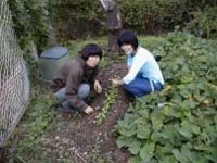 〈今年度の概況〉 2001年の1月末にキヌサヤの苗を植えました。はじめ寒さにやられそうだったので寒冷紗をかけていました。春になるとぐんぐん成長し、昨年残しておいた稲藁と竹やぶの竹を使って支柱をするなどの手入れをしました。今年度初めて栽培を始めたのですが、4月から5月にかけてたくさん収穫できました。 〈来年度に向けて〉 終盤に病気になってしまったので、病害虫に負けない苗、土作りを引き続き進めていく予定です。 |