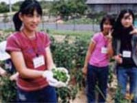 9月には、4月に植えた、ナス・ピーマンなどの夏野菜とサツマイモを収穫しました。その日の昼食では、収穫した作物でバーベキューをしました。野菜は網で焼いてサツマイモはアルミホイルにくるんで焼き芋にして食べました。とれたての野菜はとても新鮮で美味しかったです。中学生・高校生の中には、最初は「ピーマン嫌い」などといって食べない子もいましたが、みんながおいしそうに食べているのを見て、つられて食べる生徒もでてきたので、良い効果だと感じました。自然の中でとれたての野菜を焼くということは大変贅沢な体験でした。バーベキューの用意は生徒たちや大学生と、全員で協力して行い、短時間でできました。男子高校生は「焼く」という作業に積極的に参加するといった光景が見られました。 |